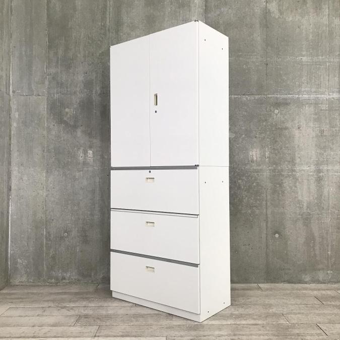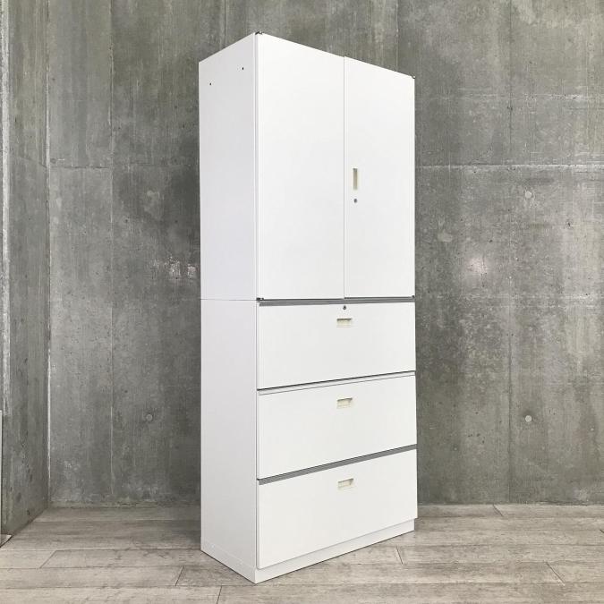 【T11】【商品入替のため、残り1台限り】イトーキ製 シンライン ホワイト W900xD450xH2140サイズ シリンダー錠 高品質で安心のスチールキャビネット! コレ1台で書類が一気に整理できます! 両開き+3段ラテラル 上下書庫セット!!
