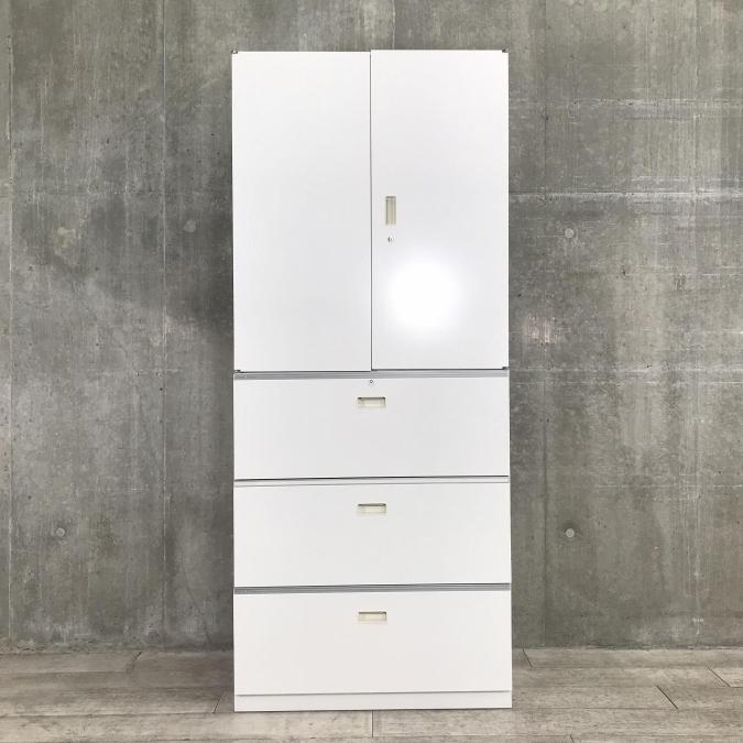 【大容量でスッキリ整理!観音開き+3段ラテラル書庫セットが入荷!】■イトーキ (ITOKI)製 シンライン(THUN LINE) ハイキャビネット (両開き+3段ラテラル) ■ホワイト ■シリンダー鍵