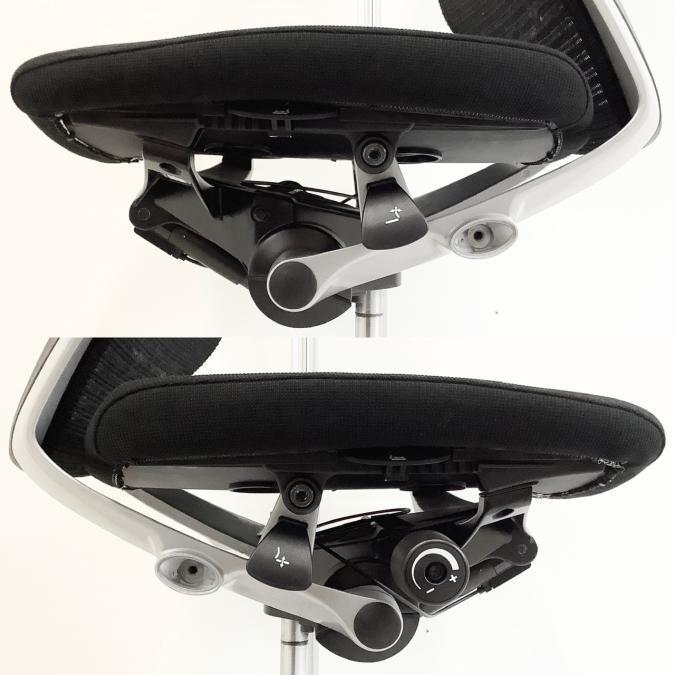 もちろん座り心地もコンテッサの直系ですから快適です。座面の素材はクッションとメッシュの2タイプあります。私、個人的には座面の中心部分でも外側でもテンションが変わらないクッション素材が、足を閉じても開いても快適なので推しです!"