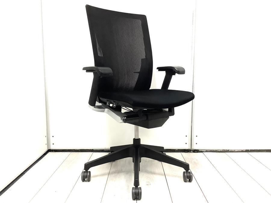 ■通気性と耐久性に優れた高品質のメッシュチェア! ■イトーキ(ITOKI)製 ヴェント(Vento)チェア アジャスタブル肘付き(可動肘) ■色:ブラック- 池袋店