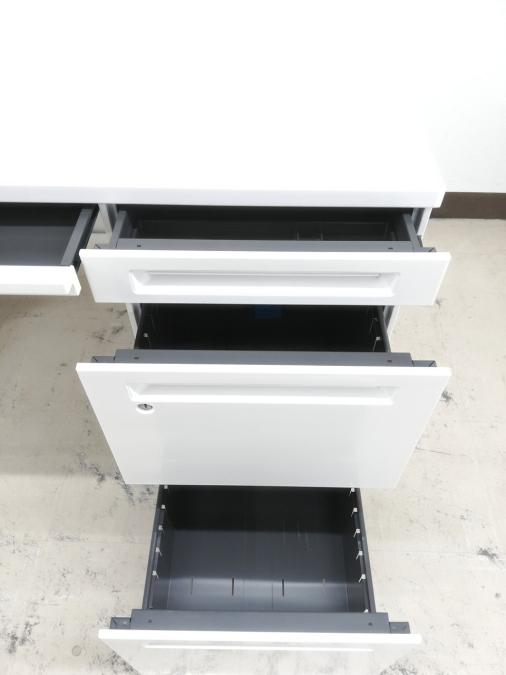 【T11】【商品入替のため、残り6台限り】オカムラ製 アドバンシシリーズ ホワイトカラー 4段収納で整理も完璧! コンパクトで清潔感のあるオフィス W1000片袖机!!