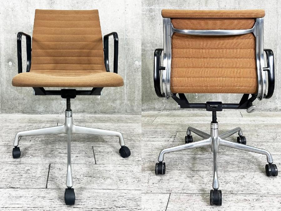C)HermanMiller/ハーマンミラー イームズ アルミナムチェア ローバック ブラウン系 ファブリック- デザイナーズ家具センター