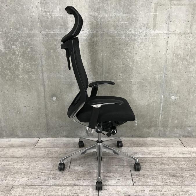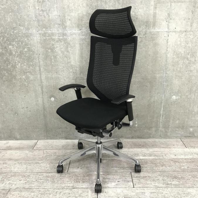 【良い椅子は腰を守る投資です!】☆ハイグレードなヘッドレスト付タイプ入荷! ■オカムラ製 バロンチェア 可動肘付 ブラック ポリッシュフレーム ■ベストなポジションが得られる先進設計!- 川崎店