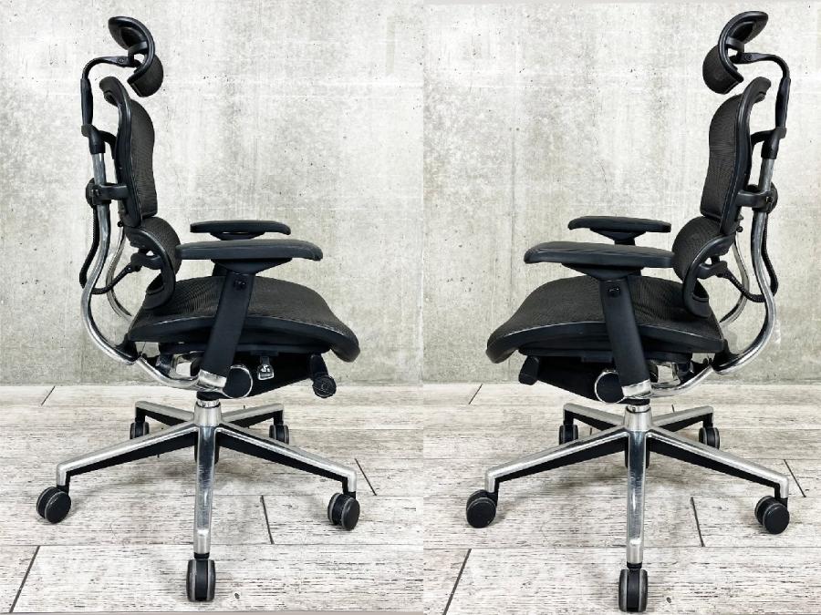 エルゴヒューマンのアイデンティティであるバックレストに組み合わされた独立したランバーサポート、高さ・前後・左右・角度を細かく調整できるアームレスト、剛性が高くスタイリッシュなアルミダイキャストフレーム等、エルゴヒューマンの初期からの特徴を継承しています。