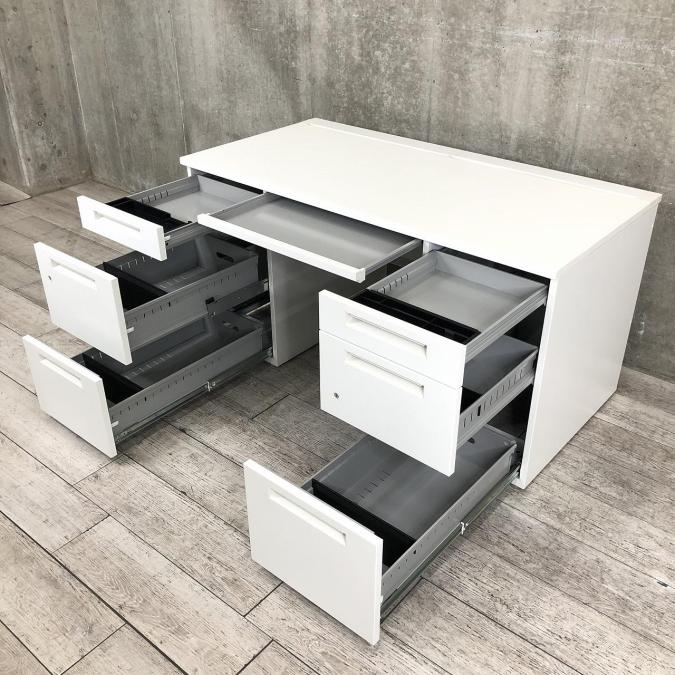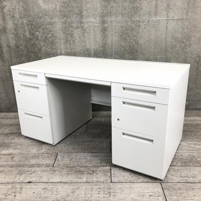 【上長席におすすめです!幅広サイズで収納スペースも豊富な幅1400㎜の両袖デスク】 [イナバ デュエナシリーズ 両袖デスク 幅1400㎜ 配線Kタイプ ホワイト]- 在庫数