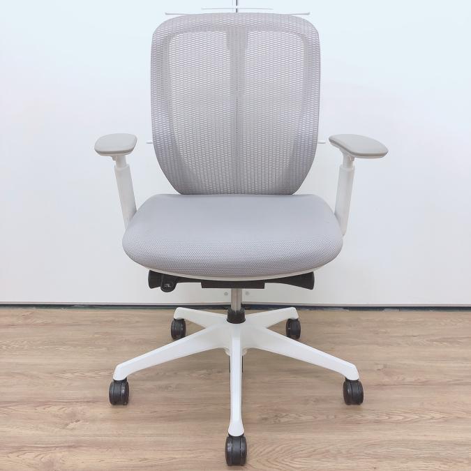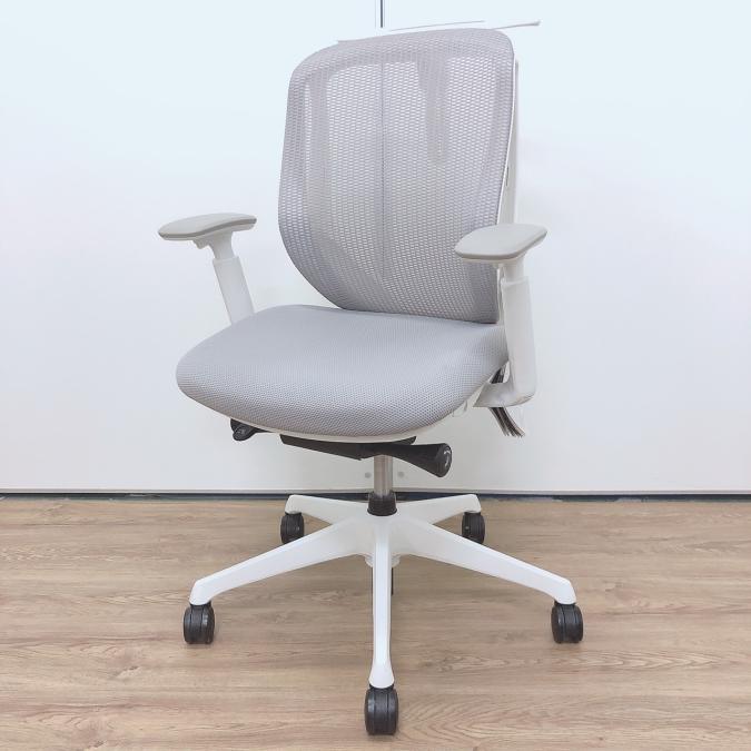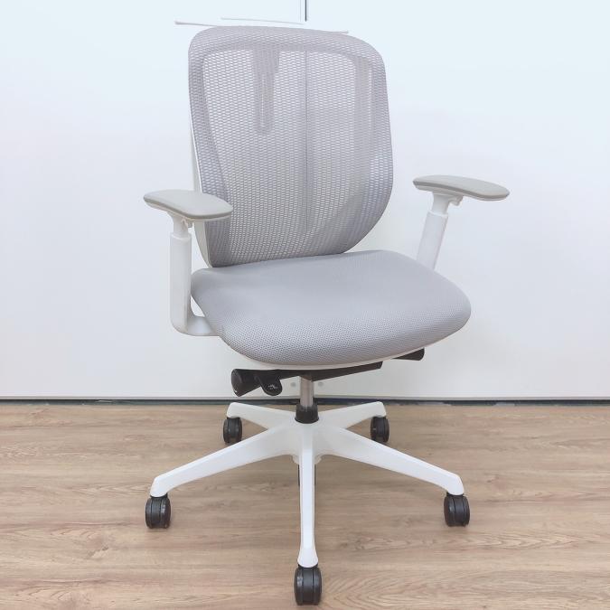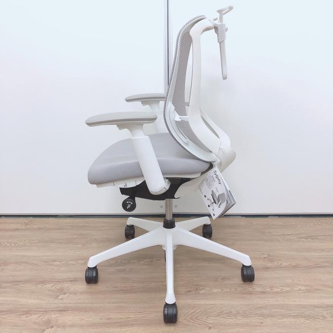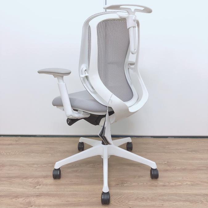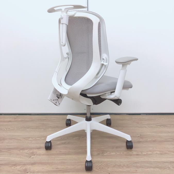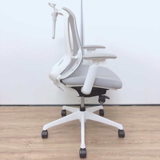 【三次元曲面が身体にフィット!】■オカムラ製 シルフィーチェア 可動肘付 ライトグレー ハンガー付 ■まるで手を添えて包み込まれるような優しい座り心地です!サーキュラーバリューCO2削減量の算出について