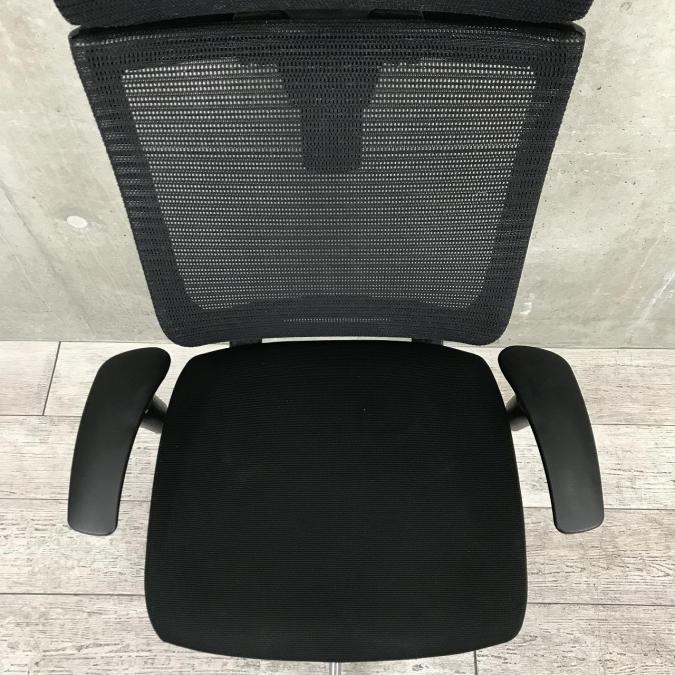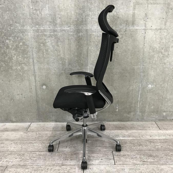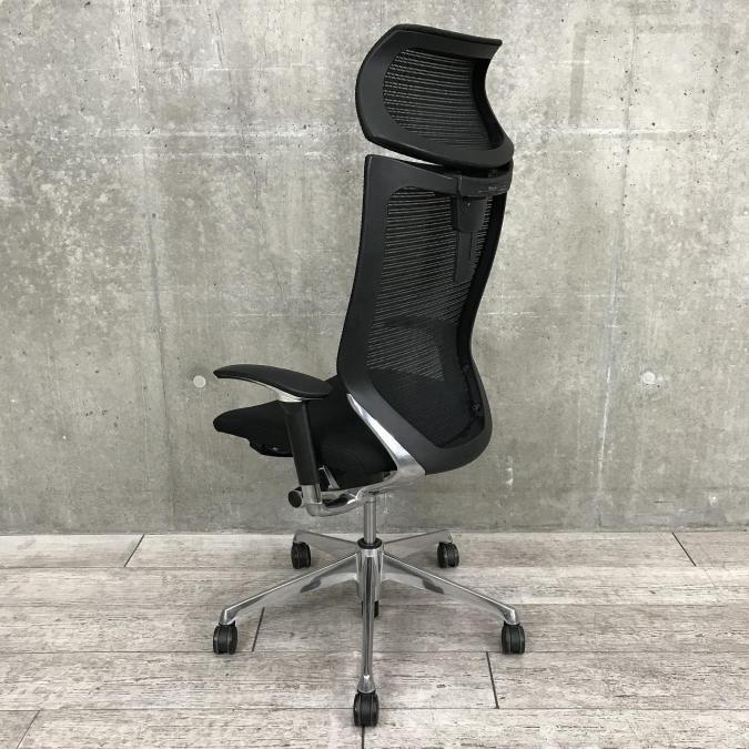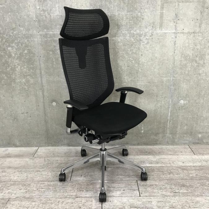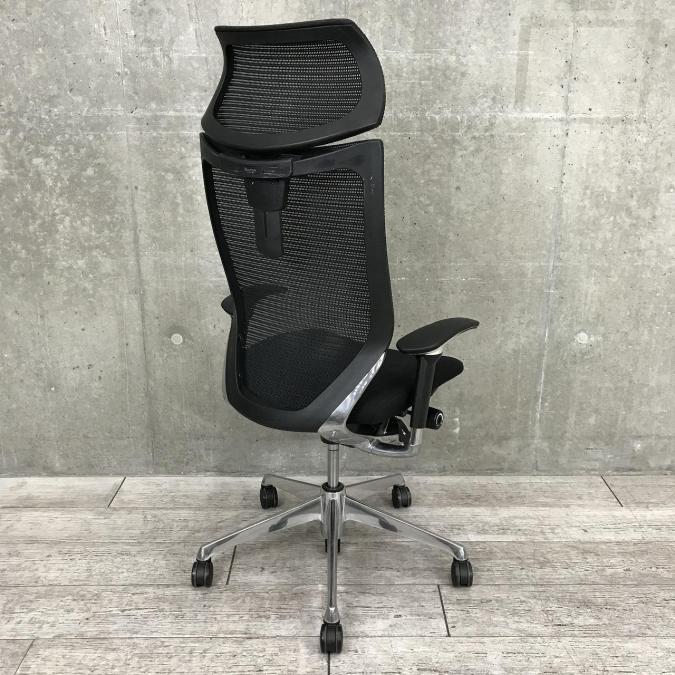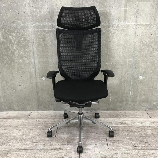 【ハイグレードなヘッドレスト付タイプのメッシュチェアが入荷!】【硬めの座面が大人気!国産メッシュチェアの代表格!】■オカムラ製 バロンチェア ■可動肘付 ヘッドレスト付き ■ブラック ■メッシュ背面 ポリッシュフレーム- 神戸・三宮店