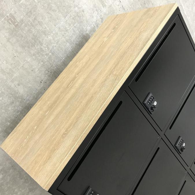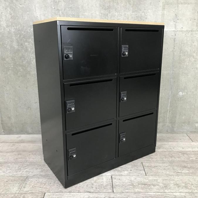 【ノートPCや書類の収納に】珍しいブラックカラーのメールロッカーが入荷!スタイリッシュなオフィスに! ■井上金庫製 6人用パーソナルロッカー ■ダイヤル錠 ■投函口付き ■本体ブラック 天板ナチュラル【フリーアドレスやコワーキングオフィスの相棒!】☆★大特価セールはこちらのキーワードで検索☆★→→【大放出】- 埼玉本店