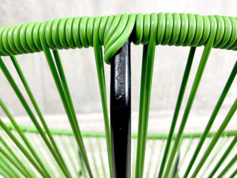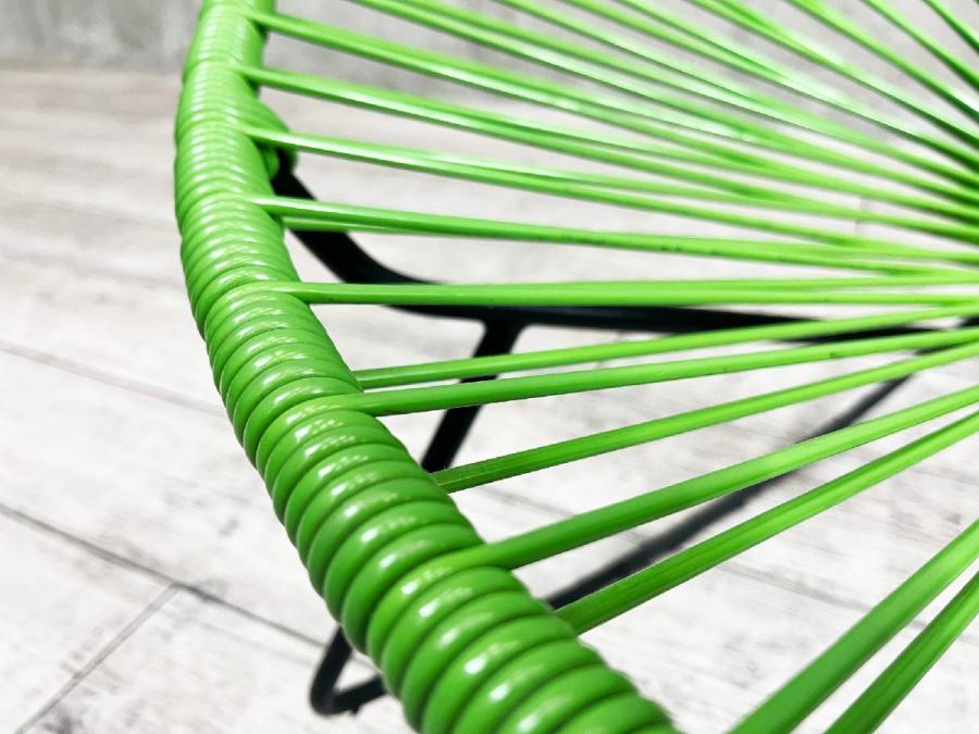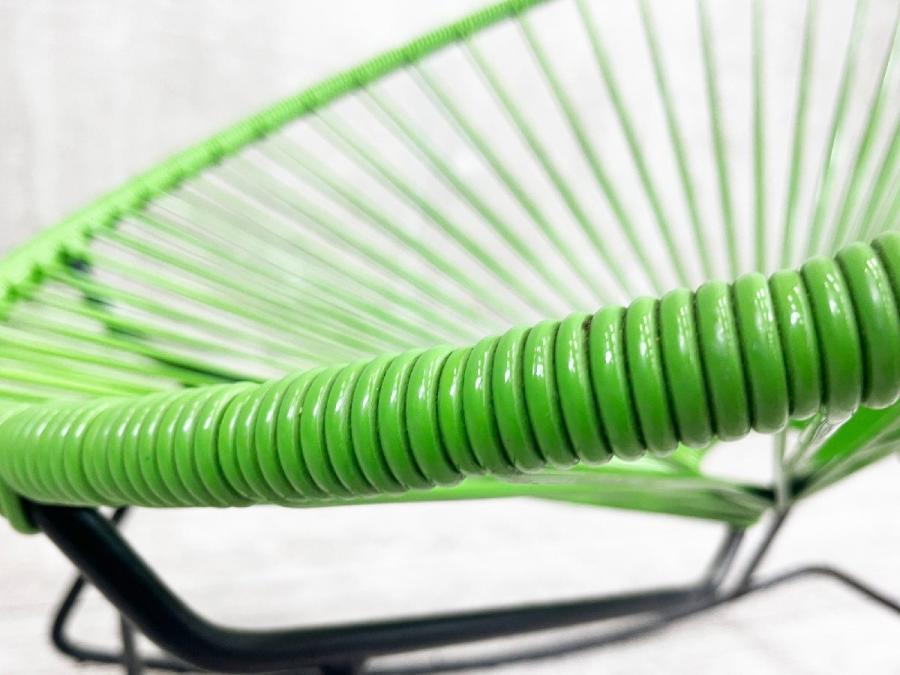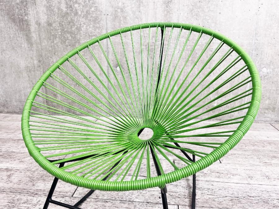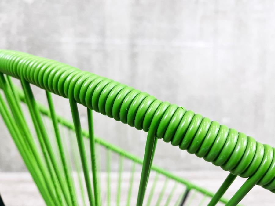 スチールのフレームにPVCコードを巻きつけたシンプルな構造で、メキシコのクラフトマンたちの手でひとつひとつ丁寧に作られています。PVCコードの特性でもある柔軟性によって生まれる、体が包み込まれるような感覚の快適な座り心地に加え、ロッキングもできる快適なチェアです。