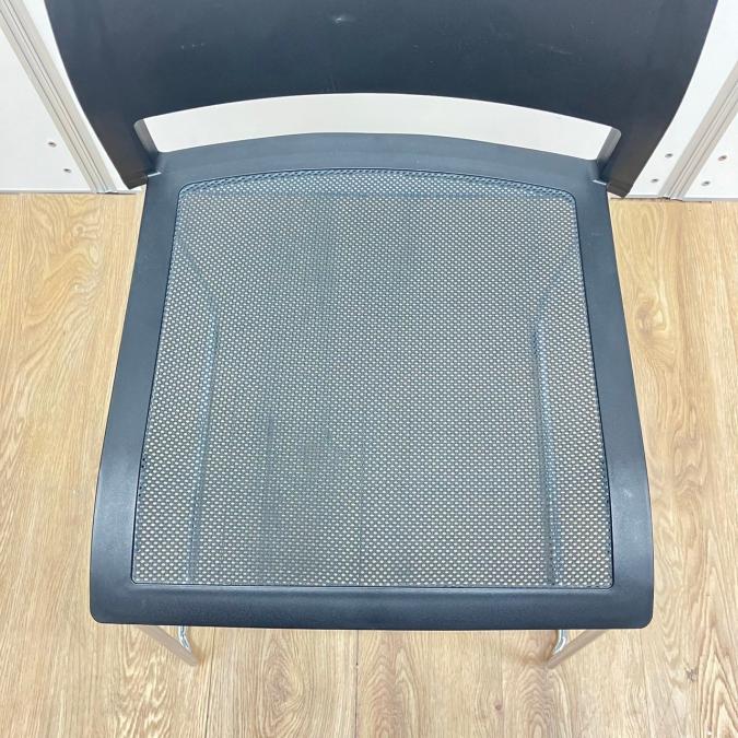 重ねて保管出来てスペースの有効活用に ブラックカラー 座面メッシュ仕様 スタッキングチェア!!※京都東寺店撮影画像※- 京都東寺店