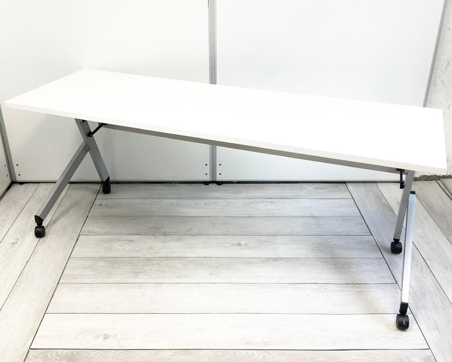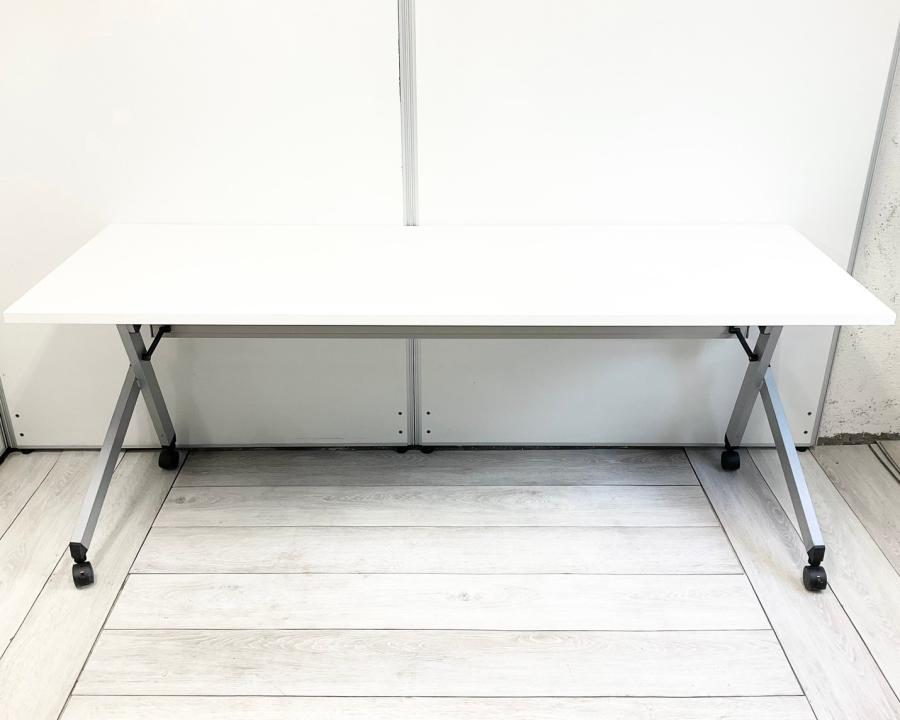 【折りたたみ収納が秀逸!スタイリッシュなデザインで高品質!】■ウチダ(UCHIDA)製 プラッテ(PLATTE)シリーズ サイドスタックテーブル W1500×D450㎜ ■キャスター付 ■ホワイト