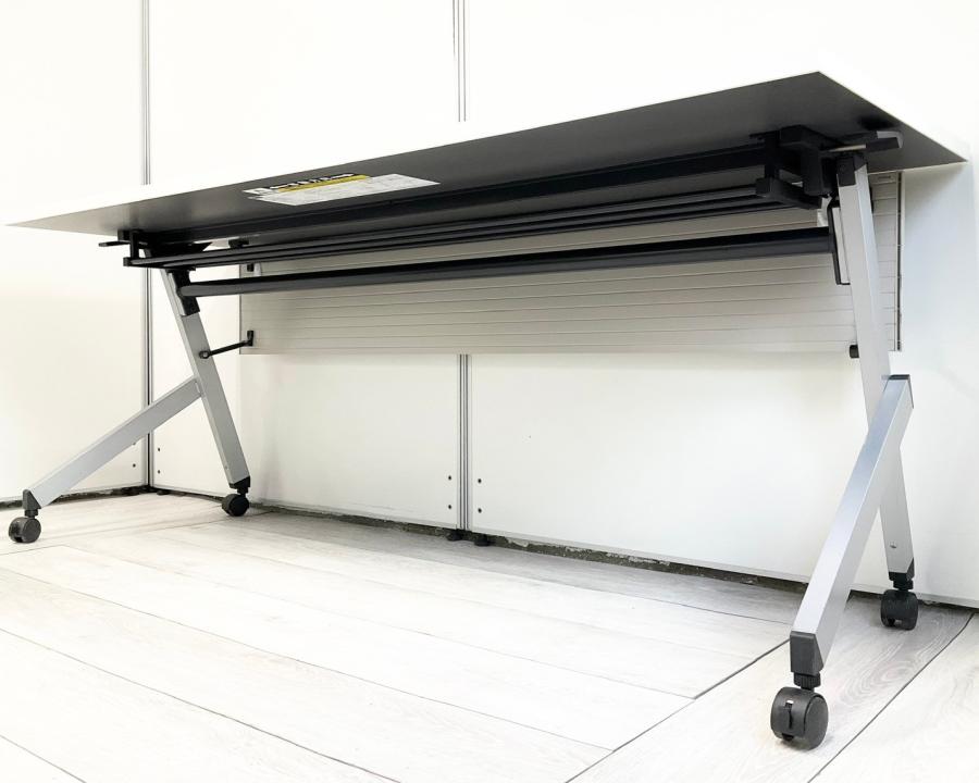 使い勝手抜群!天板を跳ね上げて収納ができるスタックテーブルが入荷!幕板付きで安心! ◆内田洋行/プラッテ(Platte)/ホワイト 横幅1500mm(奥行450mm)フラップテーブル