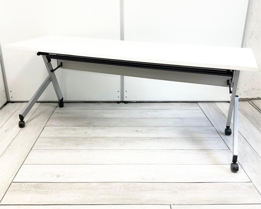 【折りたたみ収納が秀逸!スタイリッシュなデザインで高品質!】■ウチダ(UCHIDA)製 プラッテ(PLATTE)シリーズ サイドスタックテーブル W1500×D450㎜ ■キャスター付 ■ホワイト
