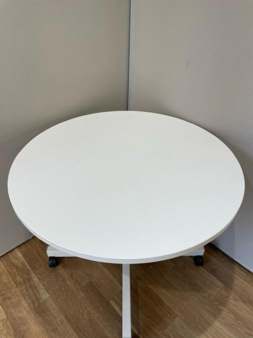 【西店撮影商品】【限定1台!】【使い方いろいろ!キャスター付きで移動も簡単!!】内田洋行 ウチダ ノティオ notio 丸テーブル Φ900 ホワイト キャスター付き【福岡オフィス家具】【福岡中古家具】【中古事務什器】【中古チェア】【中古椅子】- 福岡西店