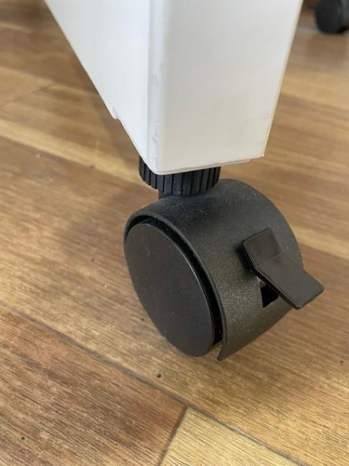 - 一部不具合あり天板歪み、アジャスター無し、キャスター使用不可ようなそのテーブルの本来の効用を果たすための機能以外の一部が使用不可な状態。(例、キャスターロッ ク機能使用不可、棚板無し等がある。)