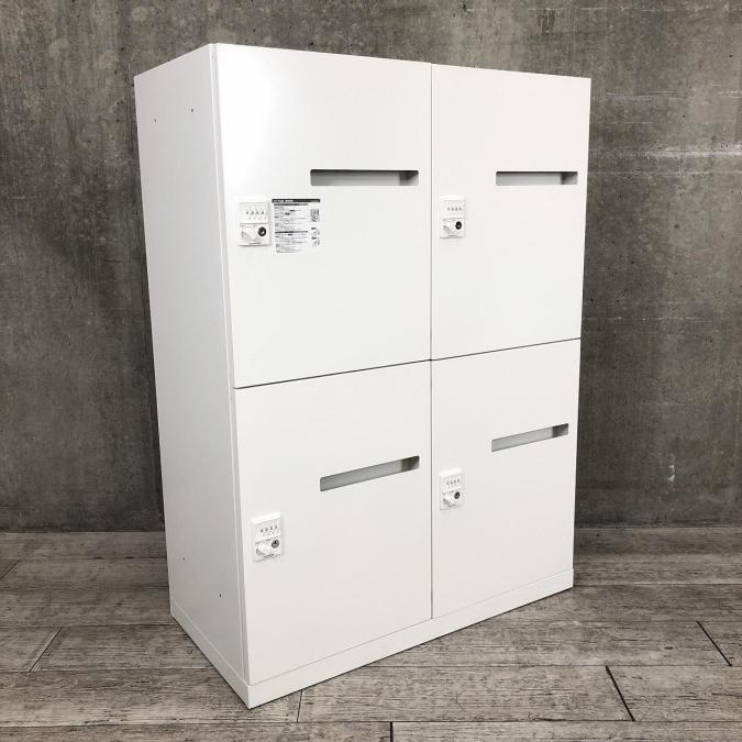 【フリーアドレスオフィスの相棒!4人用メールロッカー】■okamura(オカムラ)製 ピクスラインシリーズ 4人用パーソナルロッカー ■ダイヤル錠 投函口付き ■ホワイト- なんば日本橋店