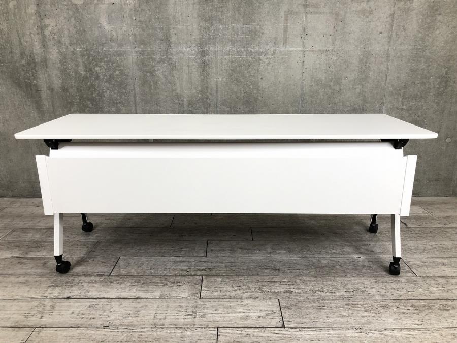 【在庫入替セール品(本在庫限定価格)】■イトーキ製 サイドスタックテーブル W1800×D600mm 幕板パネル付 ホワイト ■スムーズに移動できるキャスター付!- 川崎店