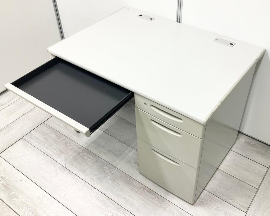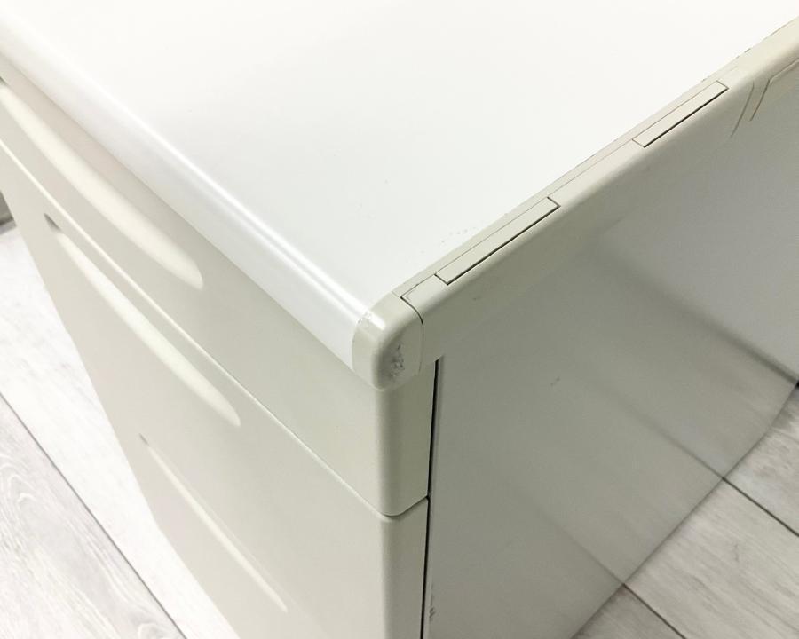 - 袖机のワゴンは、最下段がロング引出しになっており、従来より収納力120%アップ。