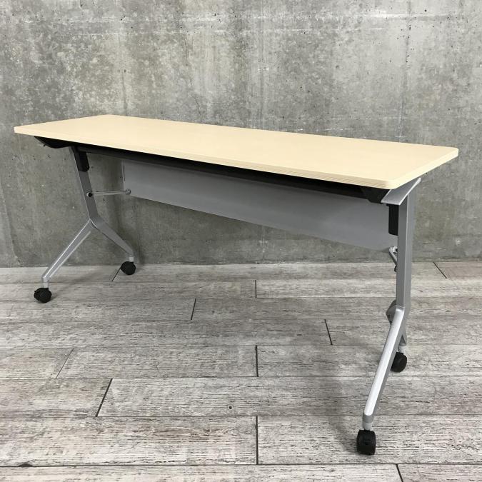 2名様で使えるスタックテーブルがまとめて入荷!揃います!キャスター付きで移動も楽々! ■KOKUYO(コクヨ)製 サイドスタックテーブル ■幅1500×奥行450 ■幕板付き ■ナチュラル【天板跳ね上げ式でコンパクトに収納】- 春日部・越谷店
