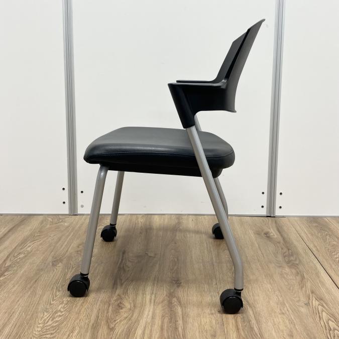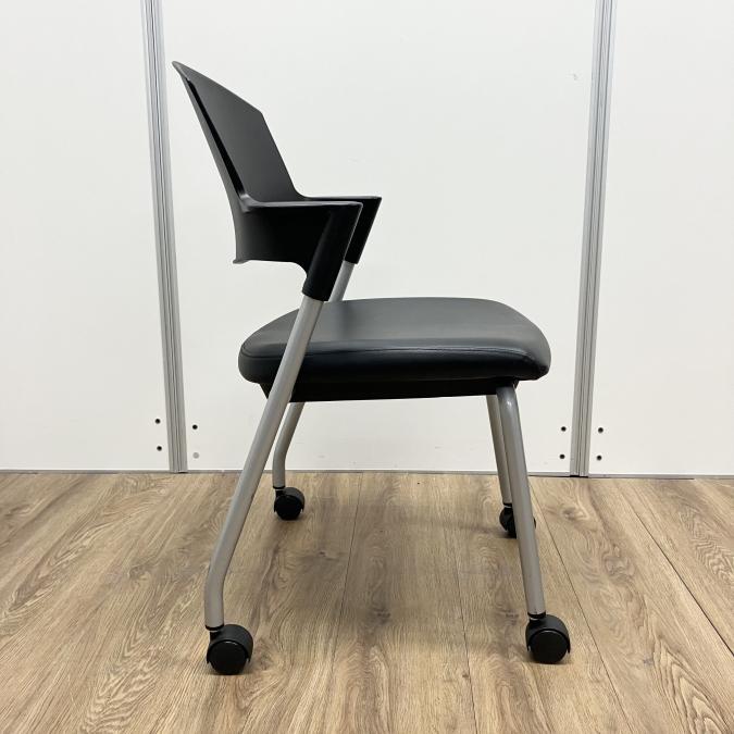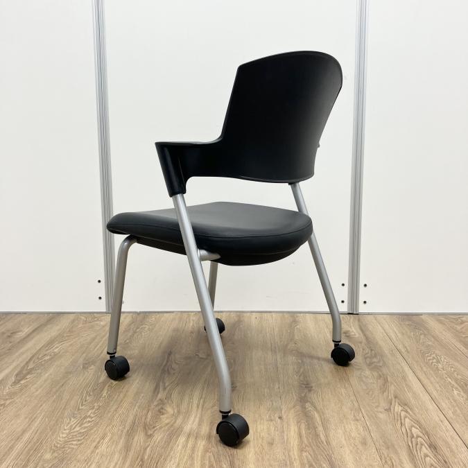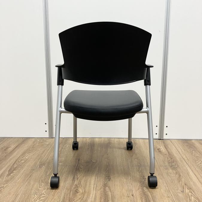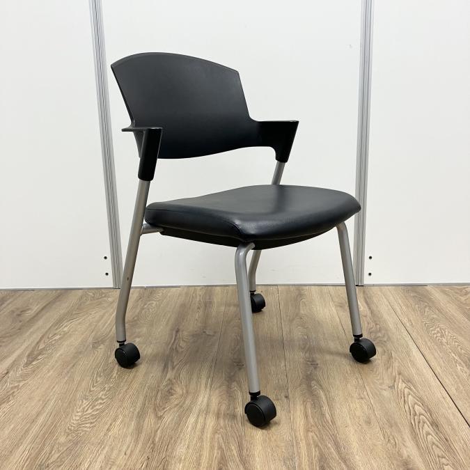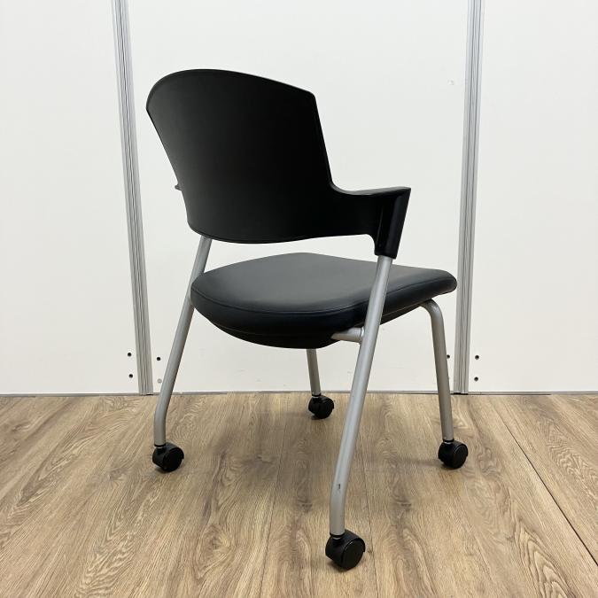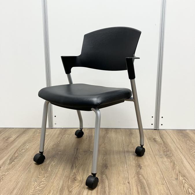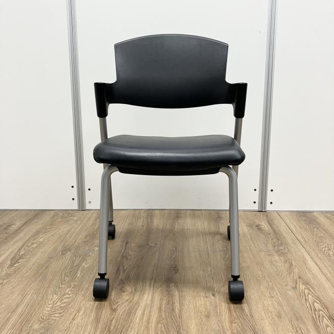 【シンプルスマートなスタッキングチェア!分厚いクッションで長時間でも快適な座り心地!】■スタッキングチェア 肘付ミーティングチェア ■固定肘 ■キャスター付 ■ブラック ■背面樹脂/コクヨ(KOKUYO/プロッティ