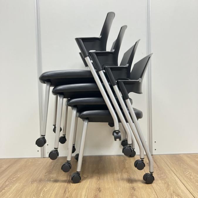 【セット商品(チェア×4脚)】【シンプルスマートなスタッキングチェア!分厚いクッションで長時間でも快適な座り心地!】/オススメ(おすすめ) /人気商品【弊社使用欄:A01037619】■スタッキングチェア 肘付ミーティングチェア ■固定肘 ■キャスター付 ■ブラック ■背面樹脂/コクヨ(KOKUYO/プロッティ