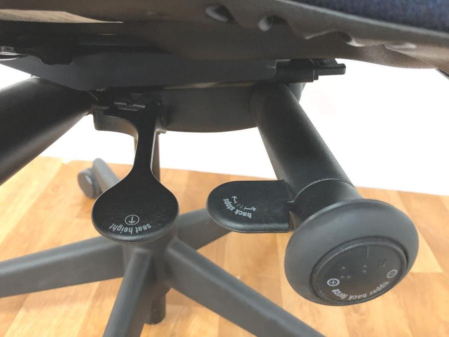 - 脊髄への負荷を軽減します。(もたれとのすき間を埋めて脊髄の自然なカーブをキープします)背もたれの上下独立した調節機構は、リープチェアだけが持つテクノロジーです。