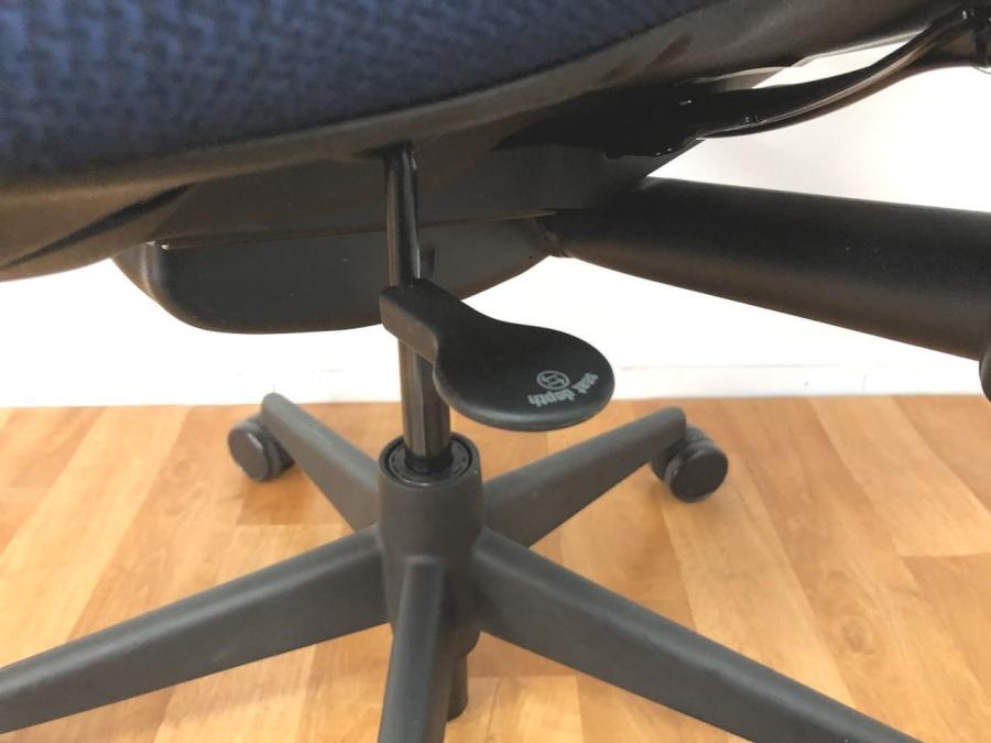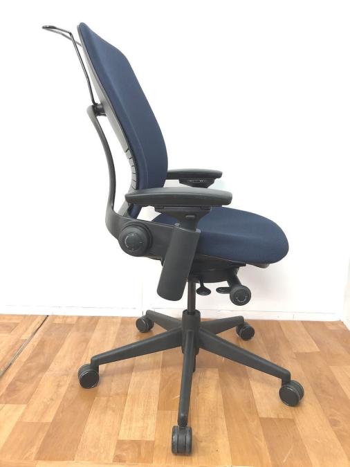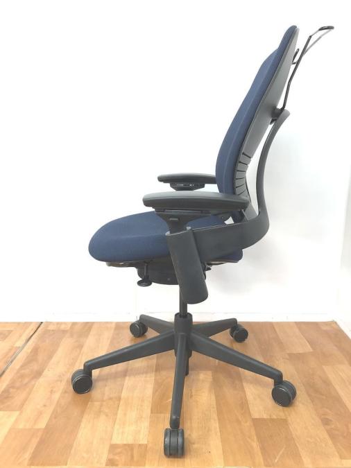 スチールケース製の可動肘付リープチェアのブルーカラーになります!!