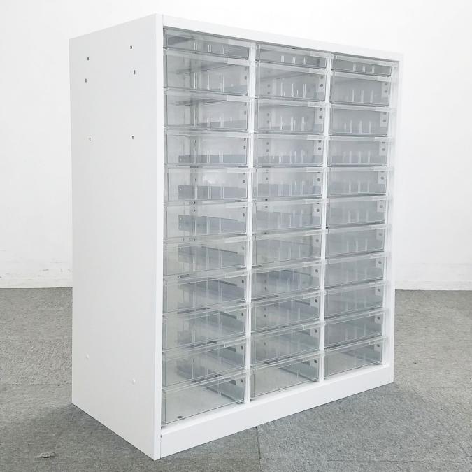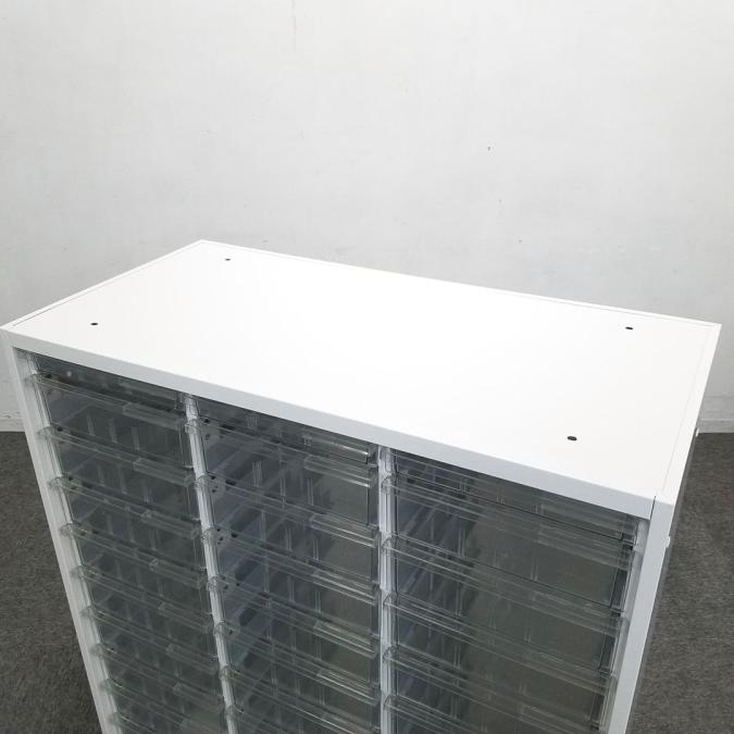 【書類・備品整理の必需品!】【珍しいクリトレが入荷!3列×浅型11段+深型5段】■イトーキ(ITOKI)製 シンラインシリーズ クリスタルトレー ローキャビネット ■3列×浅型11段+深型5段 ■天板・ベース付 ■色:ホワイト