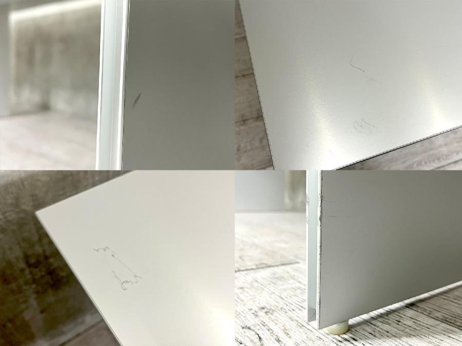 - 目立つ箇所複数あり深い傷・凹みが商品全体にある。(例、天板、幕板、棚板、サイド部分、脚部等にある。)