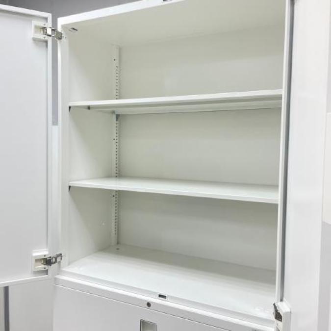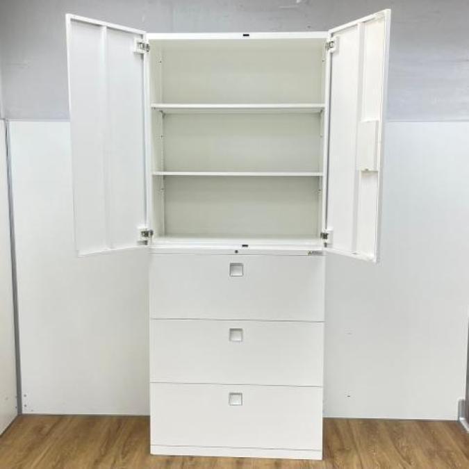 オカムラ製 レクトラインシリーズ ホワイトカラー オフィス書類を一気に整理! 両開き+3段ラテラル 上下書庫セット!!在庫がある店舗一覧
