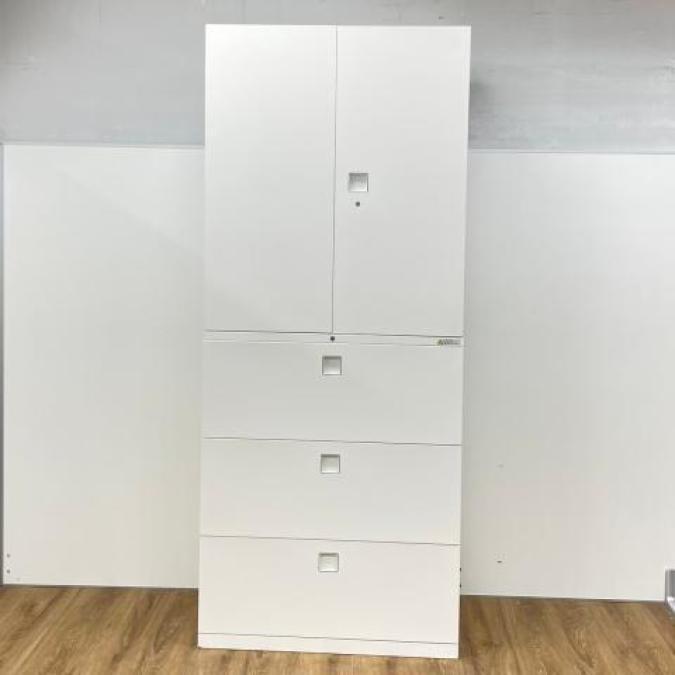 ★オカムラ製 レクトライン ホワイト シリンダー錠 オフィスの書類をスッキリ整理! 大人気レクトラインの上下書庫セット!】 ハイキャビネット 両開き+3段ラテラル 上下書庫セット!!