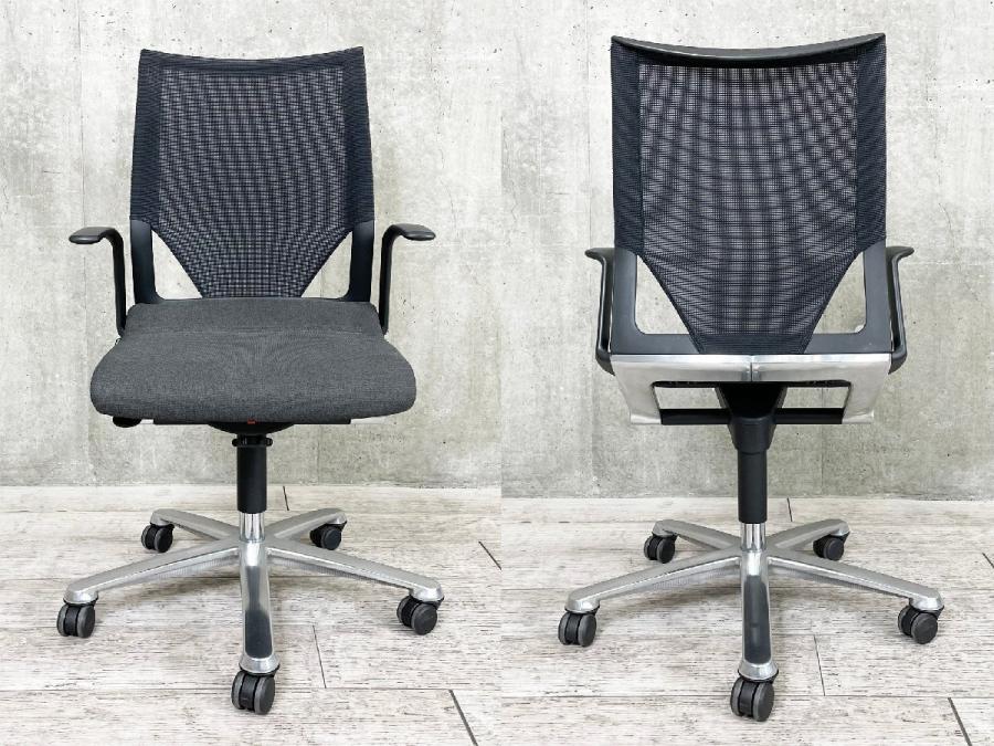 wilkhahn/ウィルクハーン モダス ミドルバックアームチェア ブラックxグレー 背メッシュ張り- デザイナーズ家具センター