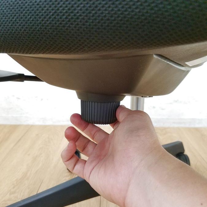 なので、「どれでも同じでしょう」と過小評価されがちですが、さすがのオカムラ製!座面の無段階上下調整やリクライニングの反発の強さ調整などに加え、リクライニンする際に足首の位置を支点にして動く、アンクルチルトリクライニングという特殊な機構が搭載されています。「人間が寄りかかる動き」にぴったりとフィットし、快適さをもたらしてくれます。
