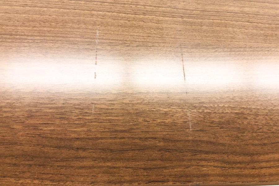 - あり黄ばみ・変色が広い範囲にうっすらある、または濃い黄ばみ・変色が一部ある。(例、天板、幕板、棚板、サイド部分、脚部等にある。)