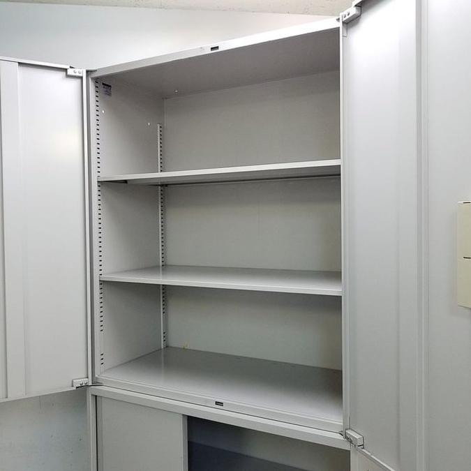 【オフィスの書類をまとめて整理!希少な両開き+引き違い書庫セットが入荷!】■イトーキ(ITOKI)製 シンラインシリーズ 両開き+引き違い 書庫セット ハイキャビネット H2140㎜ ■2枚扉 ■シリンダー錠 ■ニューグレー