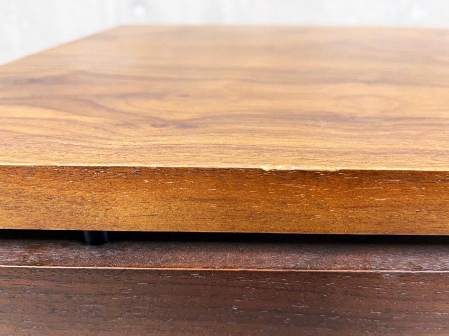 - かなり強い濃い黄ばみ・変色が商品全体にある。(例、天板、幕板、棚板、サイド部分、脚部等にある。)