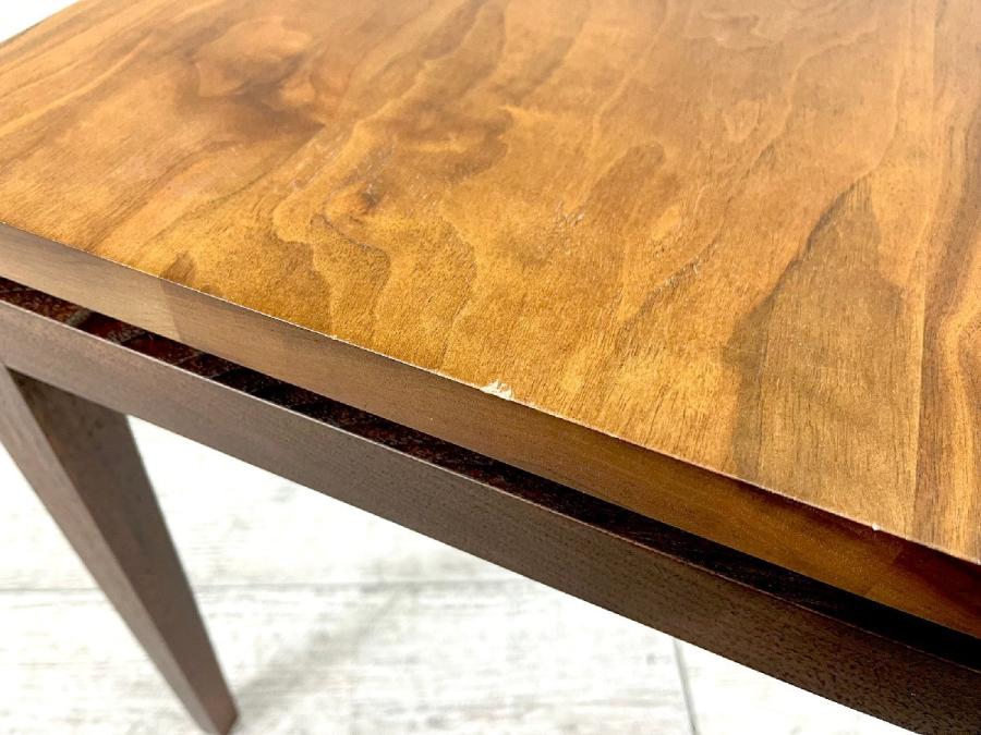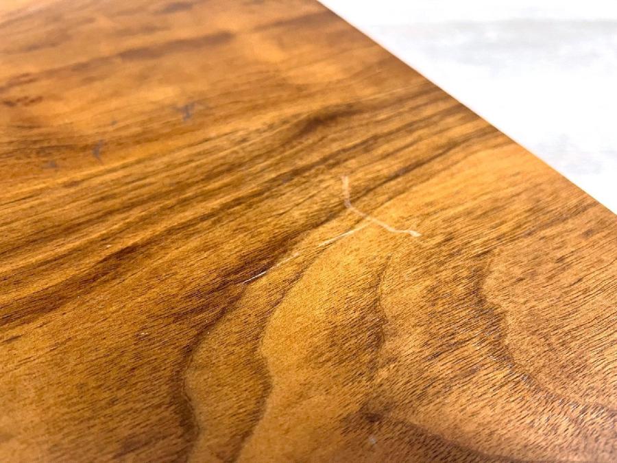 - 目立つ箇所あり傷・凹みが多数、深い傷・凹みが一部ある。(例、天板、幕板、棚板、サイド部分、脚部等にある。)