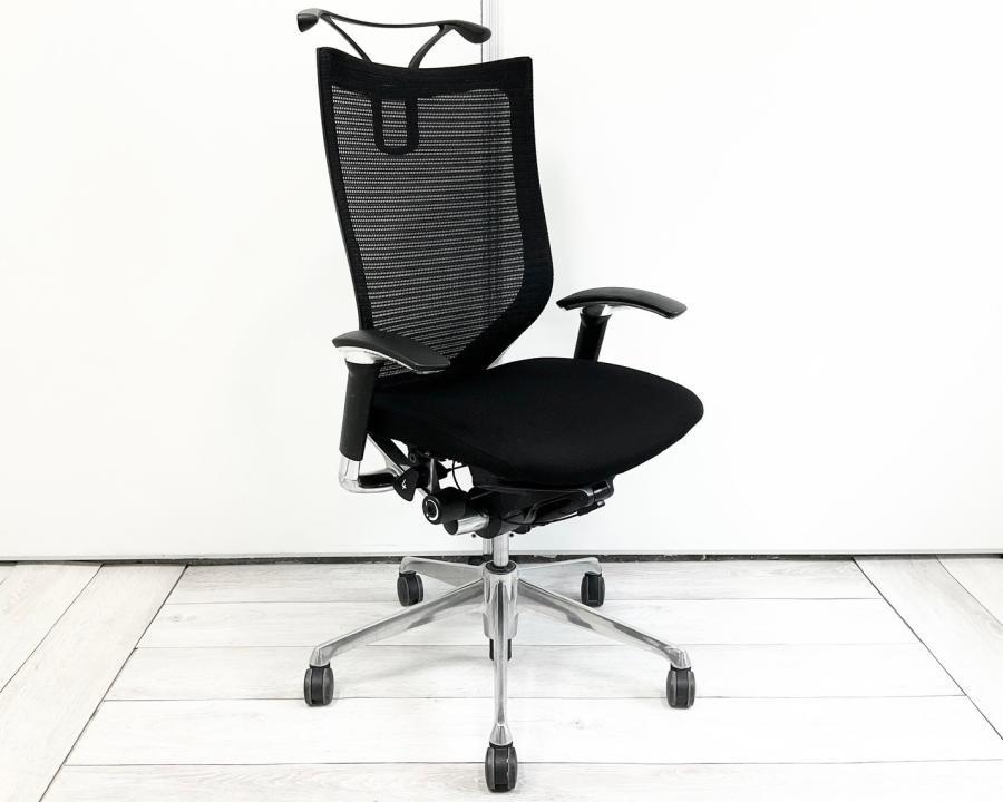 【長時間の着座でも疲れにくい!ベストなポジションが得られる先進設計!】■オカムラ バロンチェア 肘付 ブラック ハイバック シルバーフレーム ■良い椅子は腰を守る投資です!【Okamura Baron】