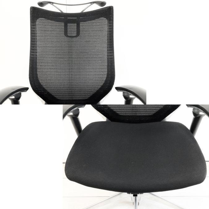 【座面メッシュ】スタンダードメッシュ ブラックフレーム アームレスト付き ヘッド付きオススメ(おすすめ) 大人気 ・Okamura/オカムラ ・Baron/バロン ※横浜本店撮影画像※
