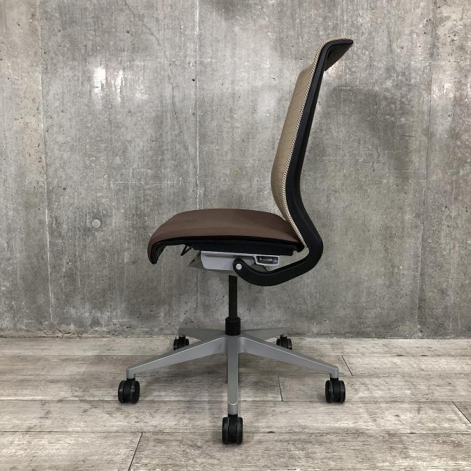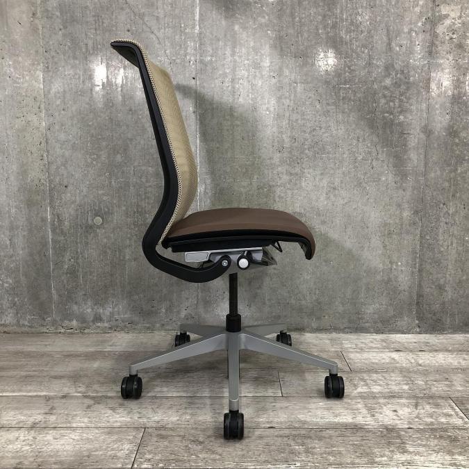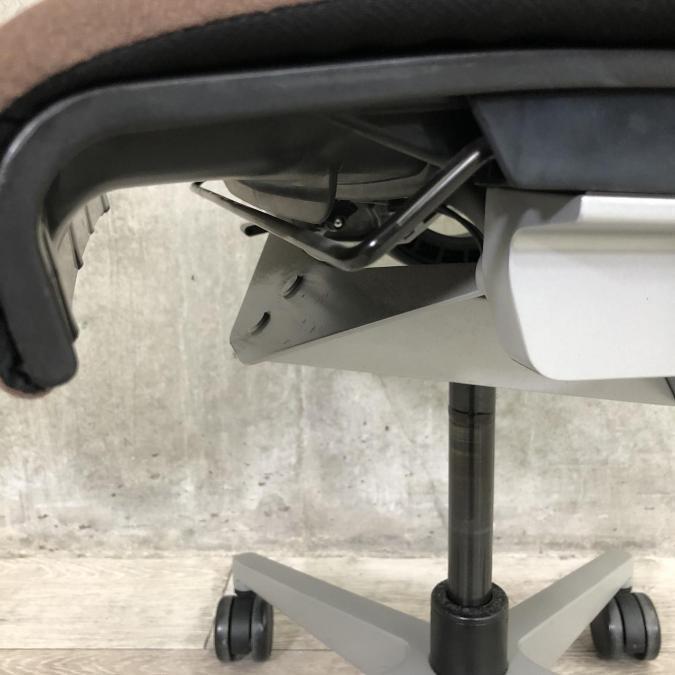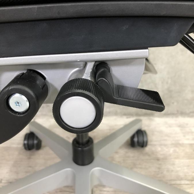 快適な座り心地に不可欠な調節機能である、上下昇降、座面の奥行き調整、リクライニングなどを備えており、操作もわかりやすく好評です。 特に、座面の奥行きは、座面下の左右に通った細いバーで調整でき、座ったままで軽やかに滑るように調整が可能です。 価格面では、新品では高めですが、中古は流通も多く、定価の3割前後の価格で高級チェアの座り心地を手に入れることができます!