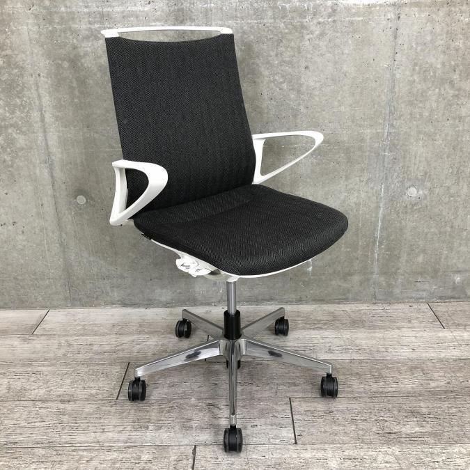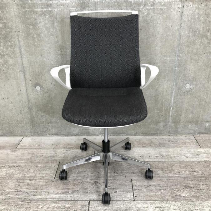 会議室やモダンなオフィスの執務用としてもおすすめの人気チェア!■オカムラ モード ミドルバック■ダークグレー ヘリンボーン ホワイトボディ ■固定肘付き 【スタイリッシュなオフィスに!】【機能とデザインが融合。包み込む座り心地を】【入れ替えセール品】- つくば店