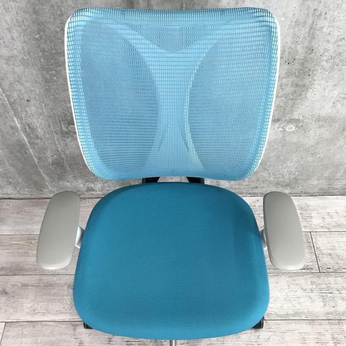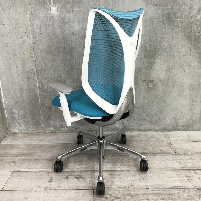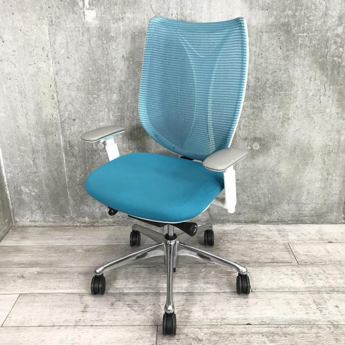 【前傾チルト付き】流れるような美しいフォルム!最高級メッシュチェア■オカムラ サブリナ (Sabrina) ハイバック 可動肘付き ■アクアブルー ■背もたれメッシュ【しなやかに、しっかりフィット】【入れ替えセール品】- つくば店