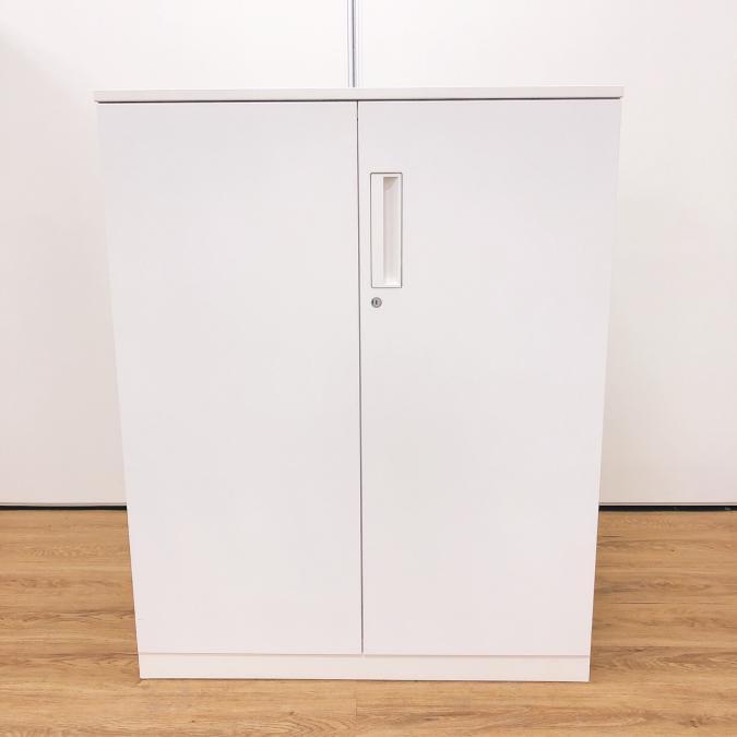 【収納物がひとめで分かる両開き戸タイプ!】■コクヨ(KOKUYO)製 エディア(EDIA)シリーズ 両開き書庫 ローキャビネット H1130㎜ ■天板・ベース付 ■ホワイト ■シリンダー錠