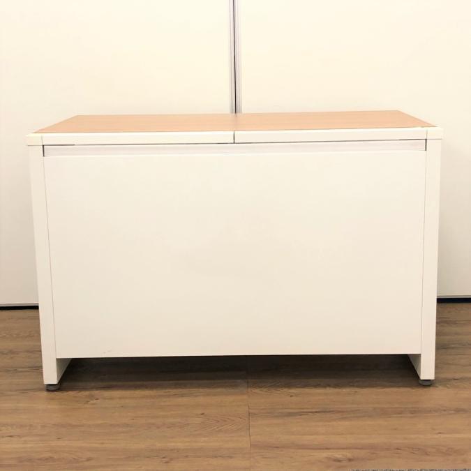【幅1100㎜タイプでコンパクト!ワイヤリング機能が充実のナチュラル天板の平机!】■オカムラ(okamura) アドバンスシリーズ(ADVANCE) 平机 引き出し付き W1100㎜ ■天板:ナチュラル / 本体:ホワイト