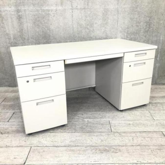 【スタンダードなデザインで高品質!収納力を備えたスチールデスク!上長様用の席にもおススメです! 】■コクヨ(KOKUYO)製 BS+シリーズ 両袖机 W1400×D700㎜ ■ニューグレー ■シリンダー錠