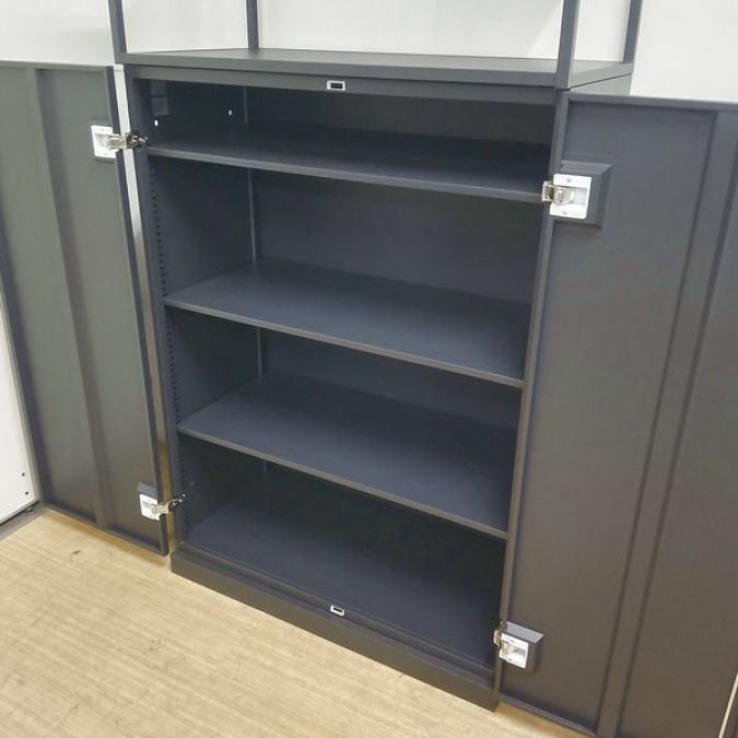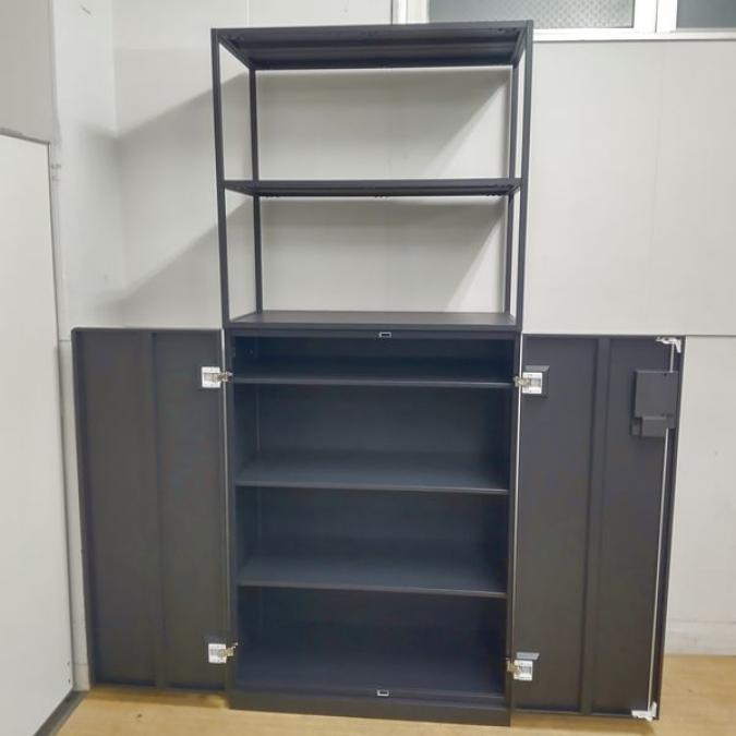 イトーキ ノットワークユニットシェルフ+エスキャビネット インテリア性の高いブラック 両開き+シェルフ- 名古屋千種店