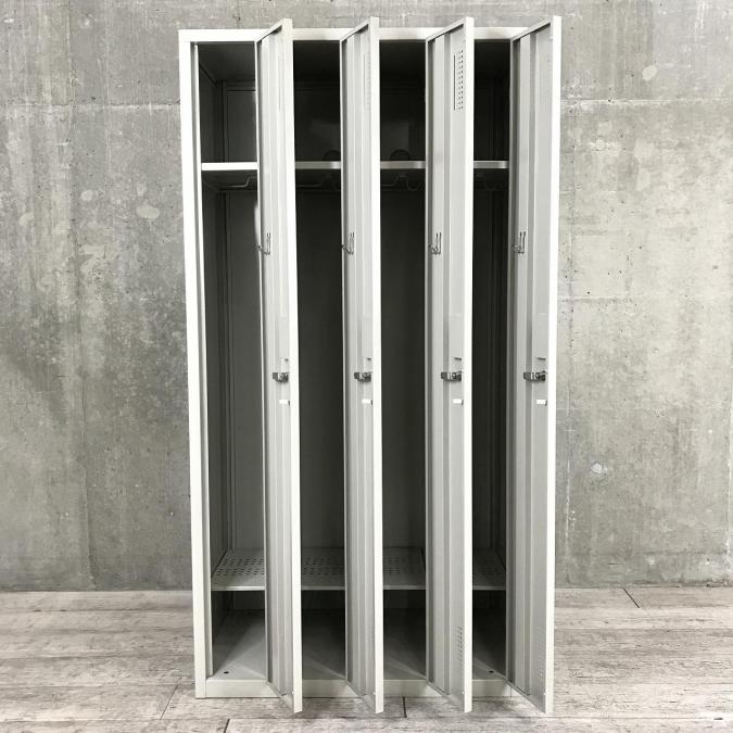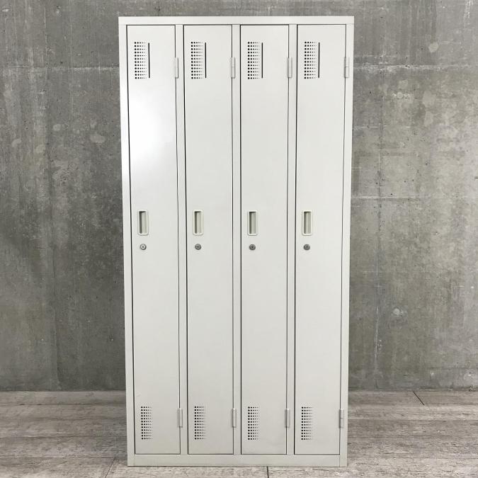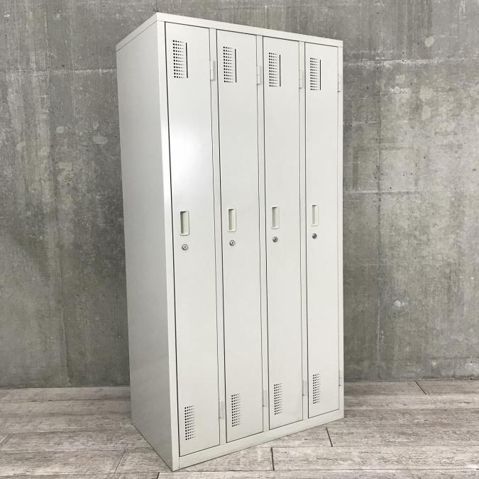 お手頃なオフィスの定番4人用ロッカー!シリンダー錠タイプ! ■BURG(バーグ)/ニューグレー ※鍵一部欠け有り- 立川・八王子店