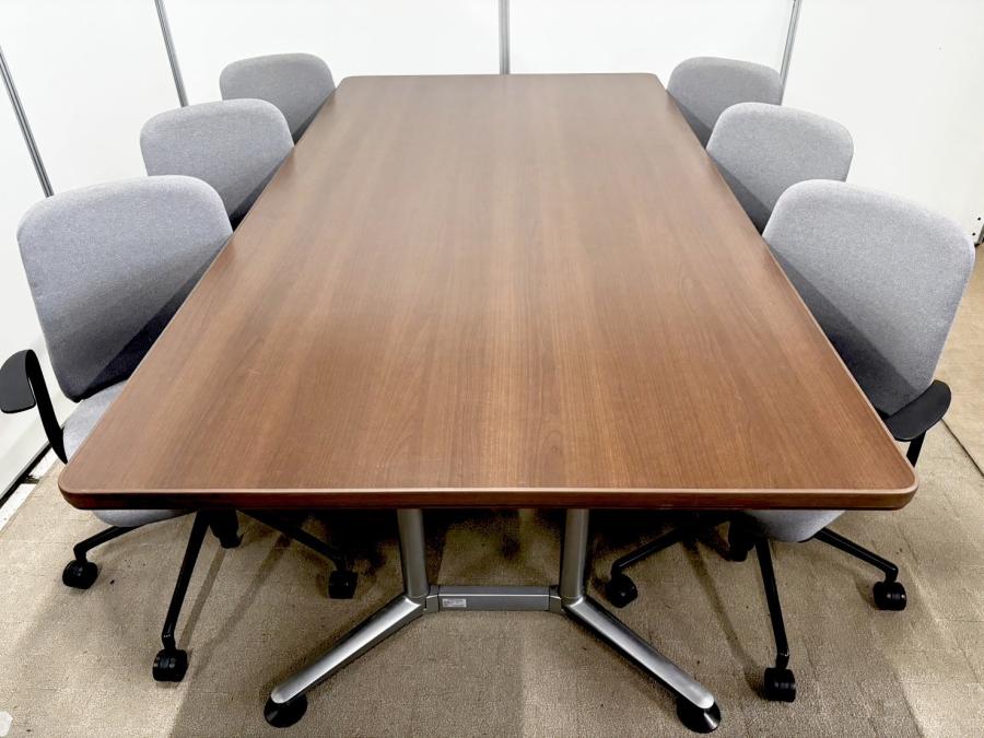 重厚感のある高級セット!デザイン性の高いミーティングテーブル+チェア6脚のセット商品! ■オカムラ/ラティオ2/ネオウッドダーク チェア:オカムラ/ライブスエントリー/グレー 高級感溢れる応接室・会議室の定番商品!- 立川・八王子店