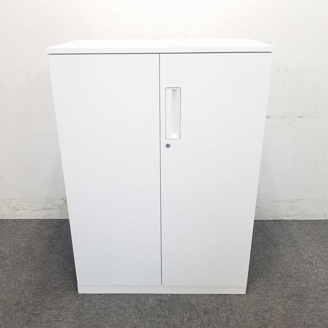 【収納物がひとめで分かる両開き戸タイプ!】■コクヨ(KOKUYO)製 エディア(EDIA)シリーズ 両開き書庫 ローキャビネット H1130㎜ ■天板・ベース付 ■ホワイト ■シリンダー錠