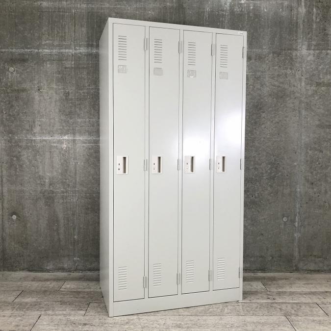 【コート類も入る縦長ロッカー!】【移転や増員を検討されている方にオススメ!】■プラス 4人用 更衣用ロッカー ■シリンダー錠 ■グレー商品状態について